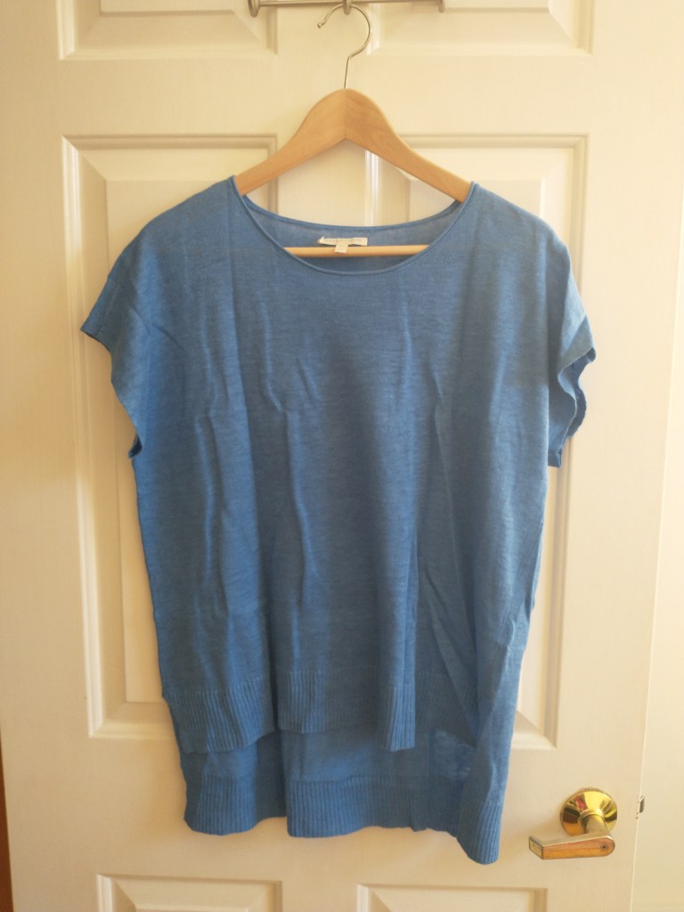 After falling in love with Eileen Fisher’s design journey and esthetic, which you can read more about here, I ordered my first Eileen Fisher garment from Eileen Fisher Renew. You can read more about Eileen Fisher Renew here. I ordered a Lightweight Fine Gauge Linen Pullover top in a beautiful blue with its condition marked as good as new for under $50.